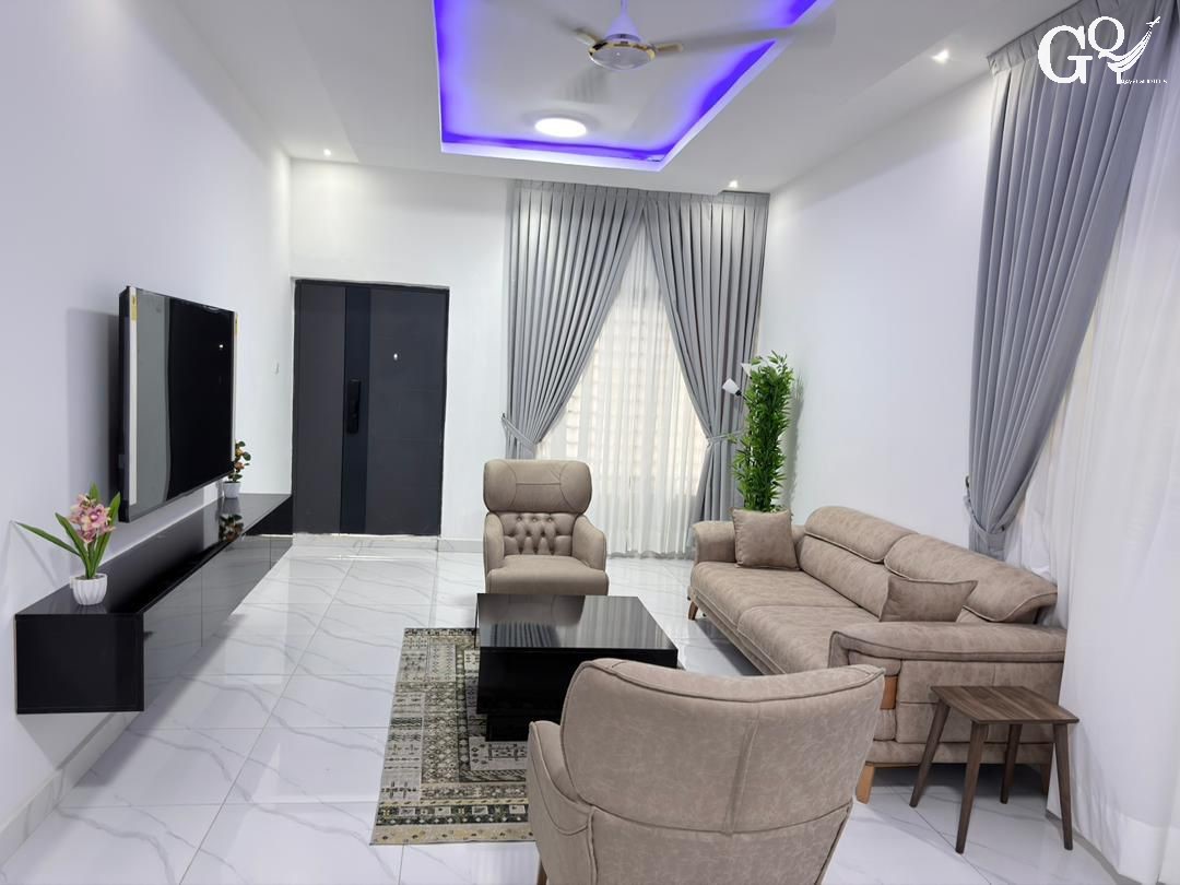 Divine Space – Spintex is a modern 3-bedroom self-compound apartment located near Peace and Love Hospital, just off Spintex Road. The property is designed for comfort, safety, and convenience, featuring automated gate access, self check-in, and a calm residential setting.